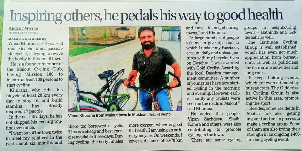 जीवन चलने का नाम है..ओर यात्रा ही मंजिल है मगर यात्रा जब सन्देश बनती है तो राष्ट्र निर्माण होता है मलोट शहर का एक ऐसा नागरिक जिसने 10 अप्रैल2108 से साईकल चलना शुरू किया 900 दिनों में 18000 किलोमीटर साईकल चला दिया हर रोज 20 किलोमीटर साईकल चलती है और पीछे होते युवा..