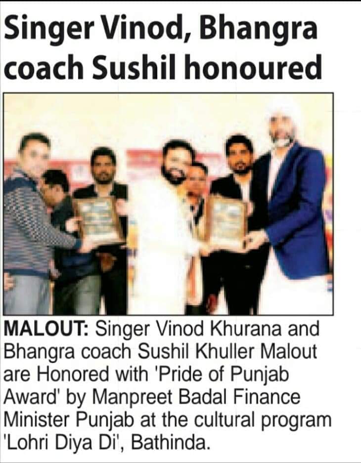 2020 में पंजाब के खज़ाना मंत्री मनप्रीत सिंह बादल द्वारा “प्राइड ऑफ़ पंजाब” पुरस्कार,