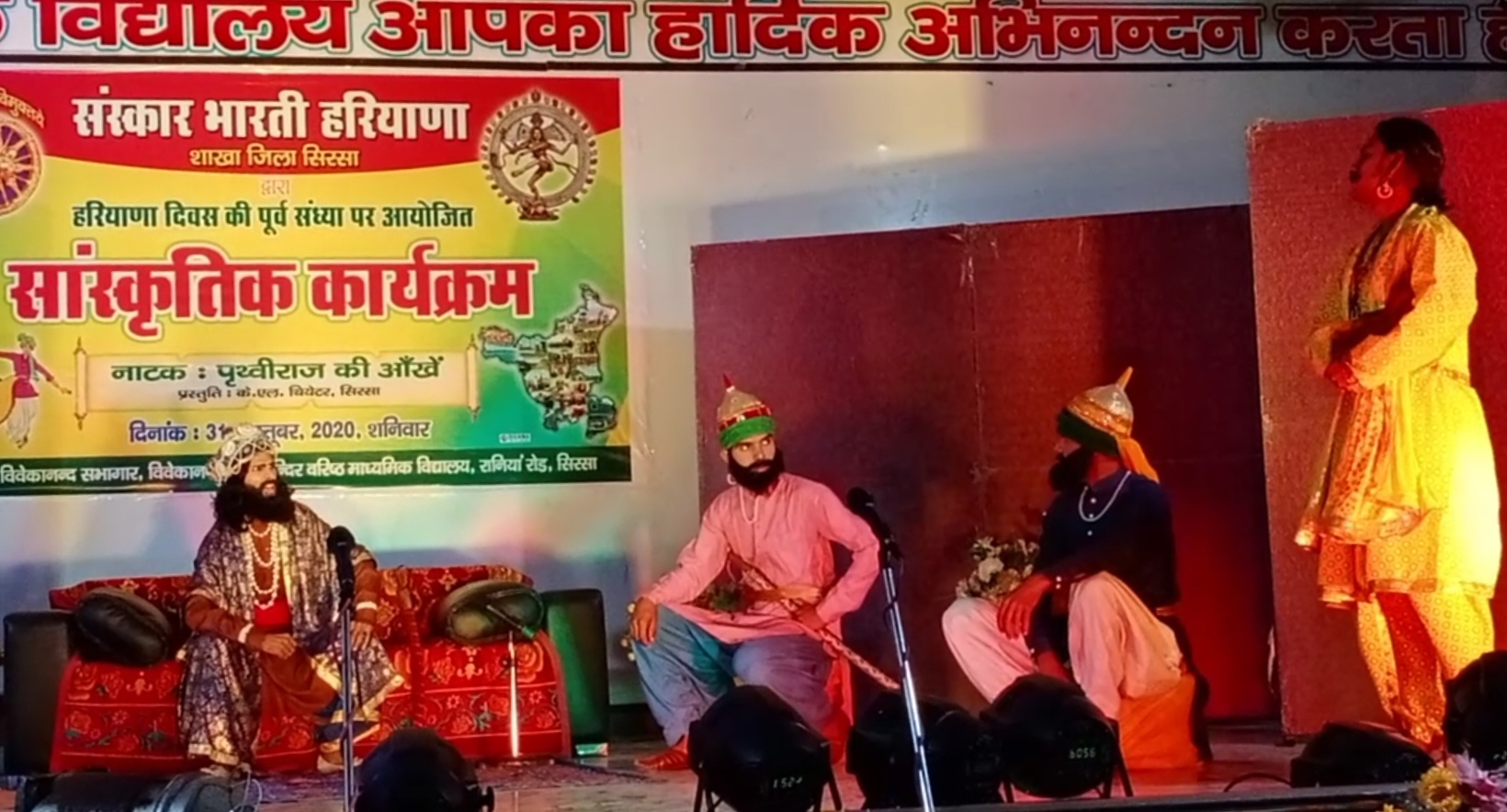 संस्कार भारती हरियाणा शाखा सिरसा की ओर से हरियाणा दिवस की पूर्व संध्या पर विवेकानंद स्कूल के सभागार में एक सांस्कृतिक कार्यक्रम का आयोजन किया गया, जिसमें केएल थियेटर की ओर से पृथ्वीराज की आंखे नाटक की प्रस्तुति दी गई। इस सिलसिले में संयोजक गंगाधर वर्मा जी व सुभाष शर्मा जी ने बताया कि इस मौके पर हरियाणा कला परिषद …